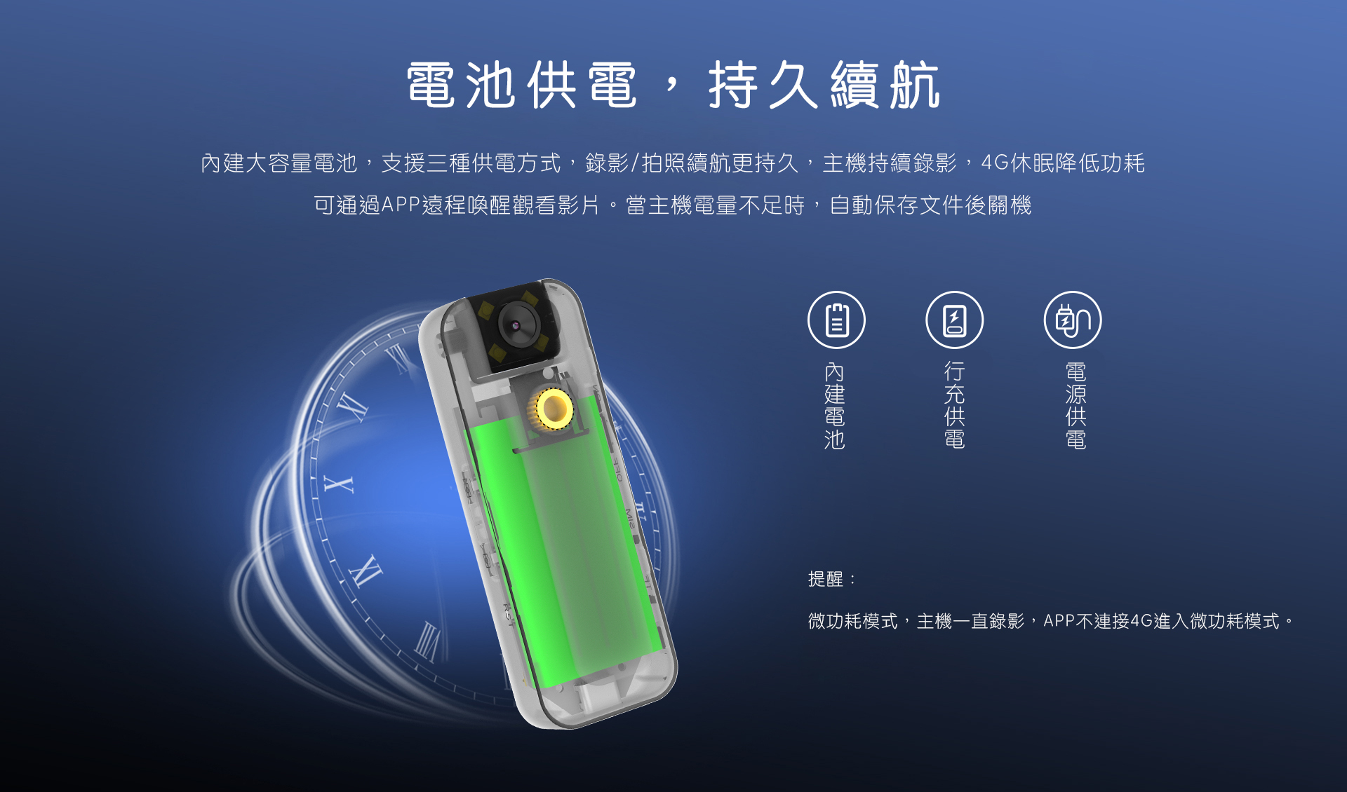電池容量 1500mAh不可拆卸電池(1080P 錄影約4hr)