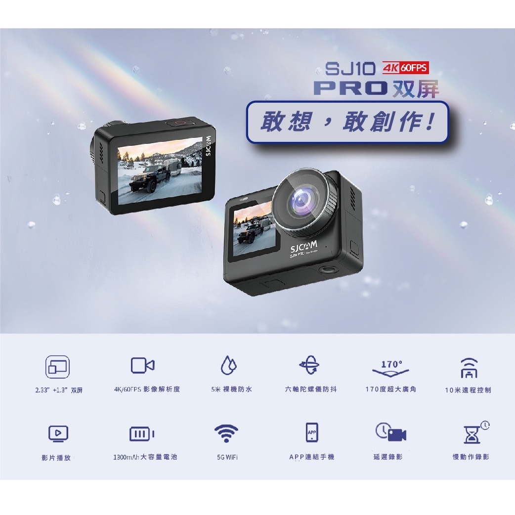 體驗高畫質、輕便攜帶、穩定紀錄的全能運動攝影機,就在 SJ10 Pro Dual Screen!